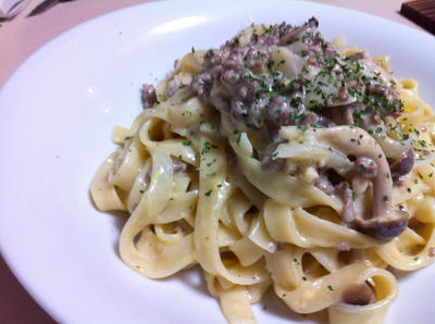 生パスタのフィットチーネで作りました。