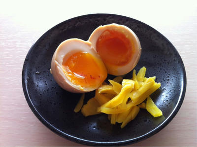 すぐ鍋の水を切ってたまごが冷たくなるまで水をいれて、殻をむいてタレに漬け込むだけ。半日くらいしたらいけるけど、日にちが経つほど美味しくなります!